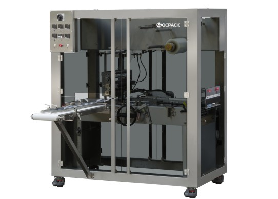 本機(jī)適用于各行業(yè)中的單件盒式物品的薄膜自動(dòng)包裝(帶金拉線)。本機(jī)整體機(jī)架采用碳鋼噴塑、落地多開安全門結(jié)構(gòu),采用平推式推盒結(jié)構(gòu),更換模具簡(jiǎn)單,調(diào)節(jié)距離多處采用手搖式調(diào)節(jié)尺寸,大大節(jié)省換模具時(shí)間,固定膜處采用氣漲軸輥固定,使換膜更簡(jiǎn)單、快速。